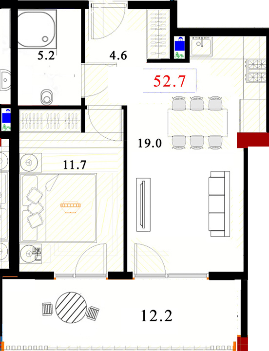 საერთო ფართი.: 52.7 m²